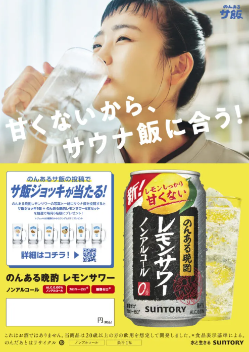 サントリー「のんある晩酌 レモンサワー ノンアルコール」と日本最大のサウナ検索サイト「サウナイキタイ」がコラボレーションした「のんあるサ飯」プロジェクトは、2022年10月にプロジェクトが1周年を迎えたことを記念し、サウナ好きの“サウナー”として知られる女優・清水みさとさんを“のんあるサ飯アンバサダー”として起用したWEB動画やグラフィックを公開した。また、2022年12月に、清水みさとさんが審査員を務める「サ飯にはのんある晩酌レモンサワー選手権」を開催。