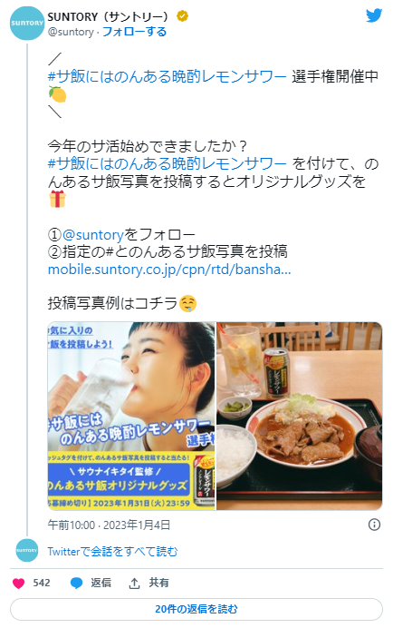 さらに、2022年12月よりTwitter上で開催中の「サ飯にはのんある晩酌レモンサワー選手権」では、お気に入りのサウナ飯と「のんある晩酌レモンサワー」 が一緒に写っている写真をユーザーから募集した。