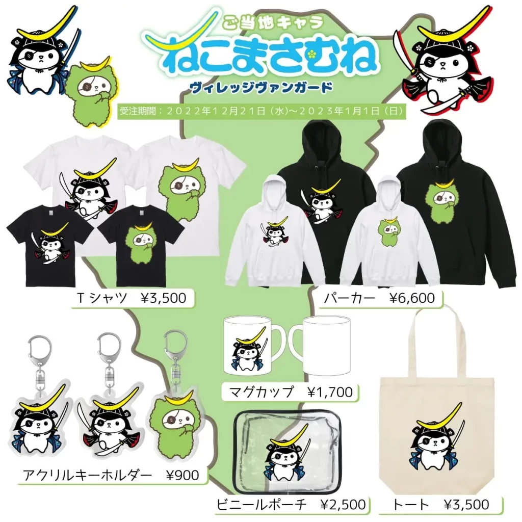 2022年12月21日(水)より、【ご当地キャラねこまさむね】×ヴィレッジヴァンガード限定グッズがオンラインストアにて発売決定!!