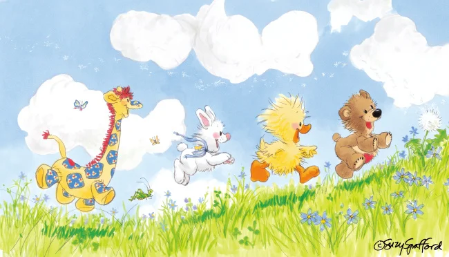 アメリカ・サンディエゴ在住のアーティスト、スージー・スパッフォードの幼い頃の体験、思い出がベースとなり、愛くるしいキャラクター達のさまざまな経験を通して、優しさや思いやりを感じさせてくれる作品です。主人公の小さなアヒルの男の子「ウィッツィー」が仲良しのお友達、テディベアの「ブーフ」や、うさぎのぬいぐるみ「ララ」達とともに、彼らにとっては大きな裏庭で繰り広げられる冒険ストーリー。癒しも感じられるやさしい世界観で、アメリカを中心に50年以上愛されています。