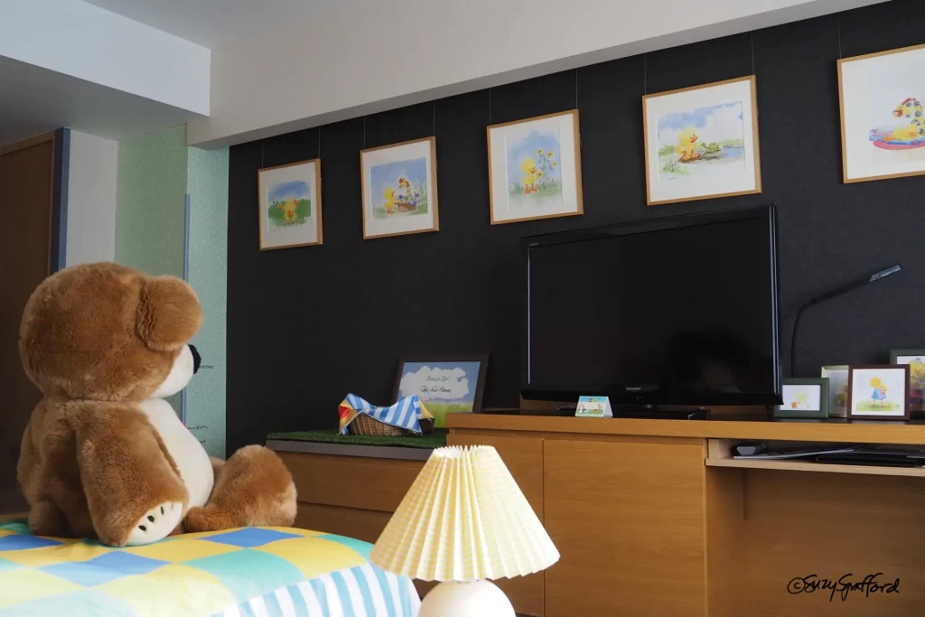 これまで半世紀以上世界中で愛されてきた「Suzy’s Zoo(スージー・ズー)」は、やさしいタッチのイラストが特徴的。今回のコラボルームでも、絵本の世界感を隅々までお楽しみいただきたいという想いから、絵本の中に登場するアートやデザインを細部まで施し、キャラクターたちをより身近に感じていただくことができる。