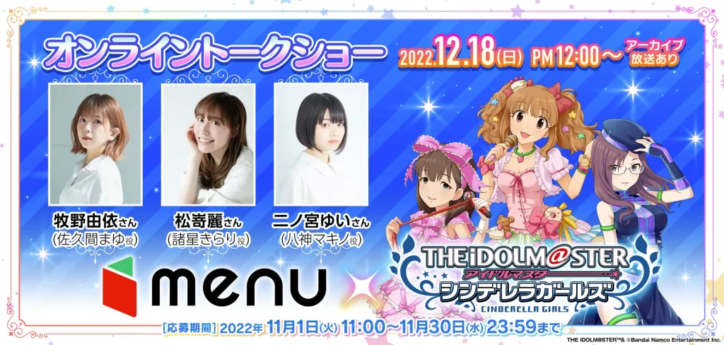 ・コラボキャンペーンサイト:https://app.menu.jp/pr/idolmaster-cinderella/