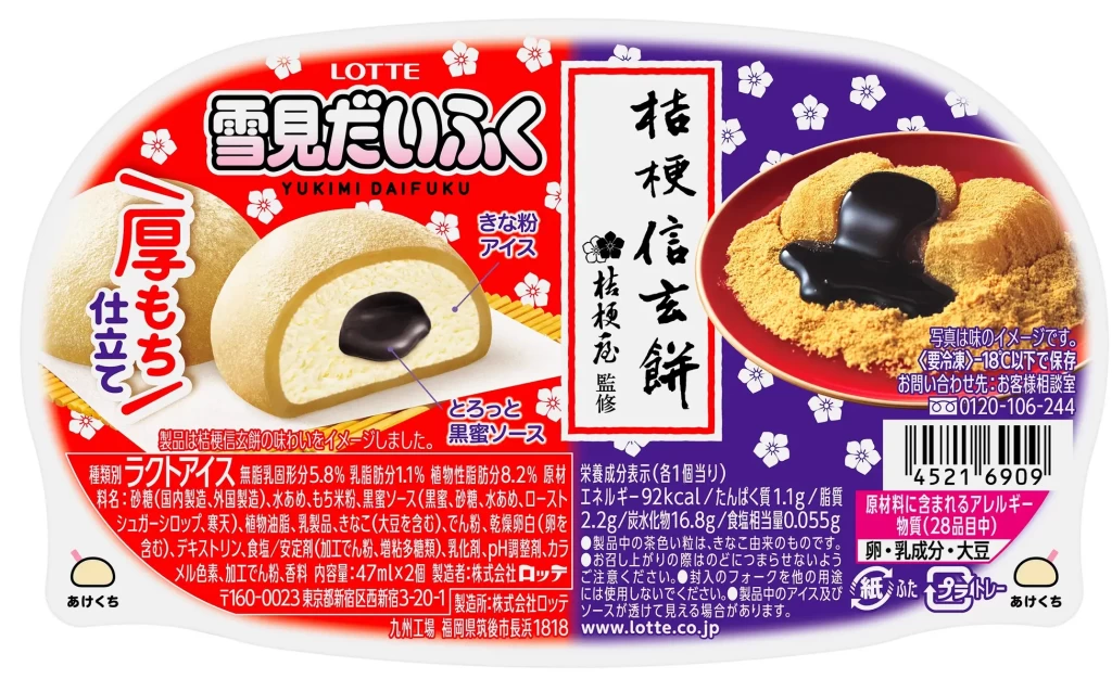 株式会社ロッテは、「雪見だいふく」ブランドから、明治22年創業の株式会社桔梗屋が製造・販売する山梨銘菓「桔梗信玄餅」とコラボレーションした「桔梗屋監修 雪見だいふく×桔梗信玄餅 」を1月17日(火)より全国のコンビニエンスストアで先行発売する。