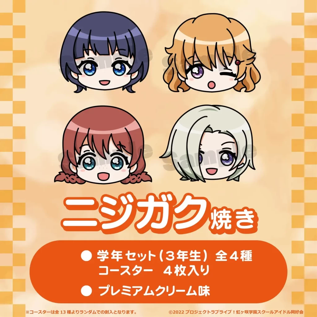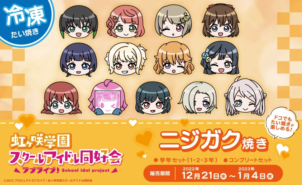 2022年3月に『ラブライブ!虹ヶ咲学園スクールアイドル同好会』とコラボレーションした『ニジガク焼き』の冷凍たい焼きをGiGOのたい焼きパートナーである株式会社くりこの通販サイトにて12月21日(水)より発売する。