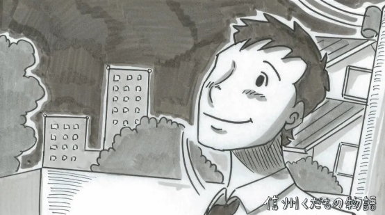 お話の主人公は、長野県出身の会社員だ。まだ若いその男性は、汗を流しながら一生懸命に仕事をしているものの、しょっちゅう怒られてばかり。