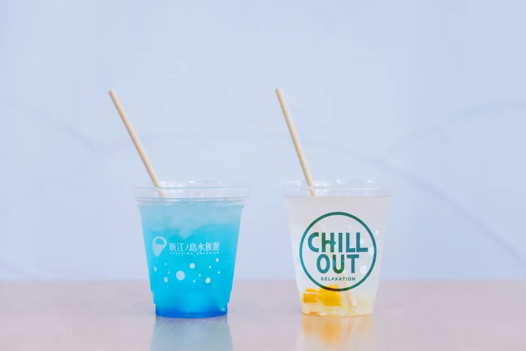 江の島の海をイメージした、ブルーのドリンク。