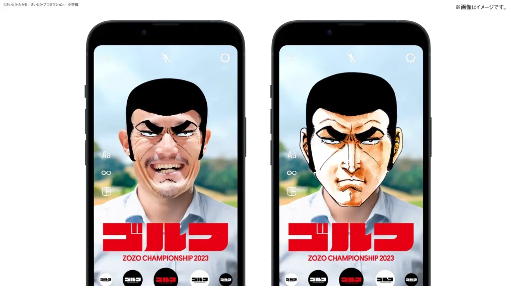 さらに、ZOZO CHAMPIONSHIP公式Instagramアカウント(@zozochamp)にて、ゴルゴ13風の劇画調で写真や動画が撮影できるInstagramフィルターを提供開始するほか、同アカウントにてユーザー参加型の大喜利企画「ゴルゴがゴルフでボケてみた」を本日9月19日(火)~10月18日(水)の期間で開催します。大会本戦の30日前から開始される本企画期間中、大会までのカウントダウンのように毎日発表するお題への大喜利回答を募集し、最優秀賞に選ばれた方には採用された回答とお題をプリントしたオリジナルTシャツに、今年のZOZO CHAMPIONSHIP優勝者のサインを添えてプレゼントする。