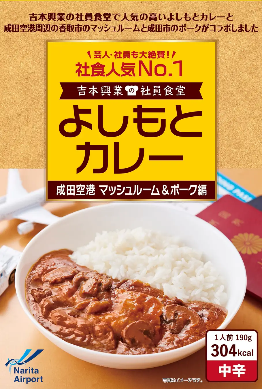 吉本興業東京本部にある社員食堂で最も人気の高いメニュー「よしもとカレー」と、千葉県・成田空港周辺地域の食材である「芳源マッシュルーム」と「笑顔大吉ポーク」を贅沢に使ったコラボレーション商品『よしもとカレー 成田空港 マッシュルーム&ポーク編』 が完成し、9月20日(水)に発売される。