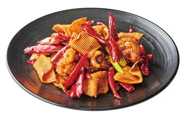 パセラで人気の四川料理「辣子鶏丁(ラーヅーチーティン)」。後引く辛さにベビースターのパンチ力も加わり、やみつきになる一品です。