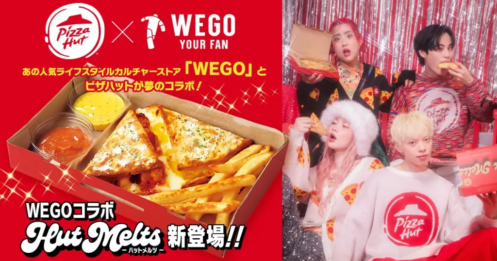 日本ピザハット株式会社が展開する世界最大級のピザチェーン「ピザハット」と、人気ライフスタイルカルチャーストア「WEGO」とのコラボレーションが決定し、ピザハット側では【WEGOコラボ Hut Melts(ヤンニョムチキン&コグマスイートポテト)】を、WEGO側では【Pizza Hut×WEGOコラボレーションアイテム】を2023年10月6日(金)より発売を開始する。