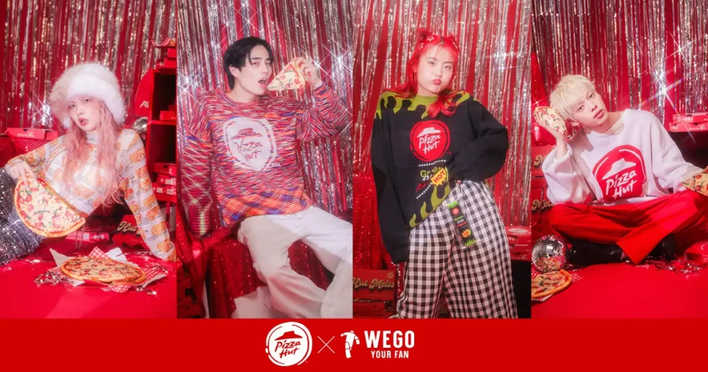 「WEGOではピザハットのピザやグリーンチリソースをモチーフにしたアパレルやグッズを発売!」