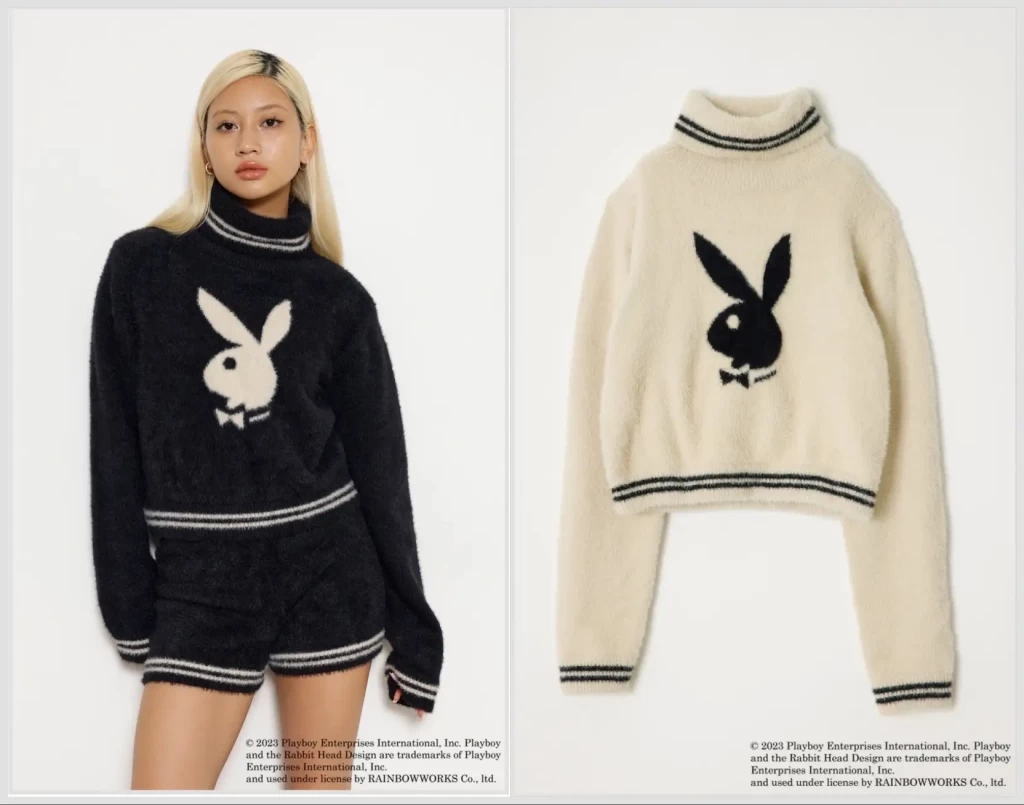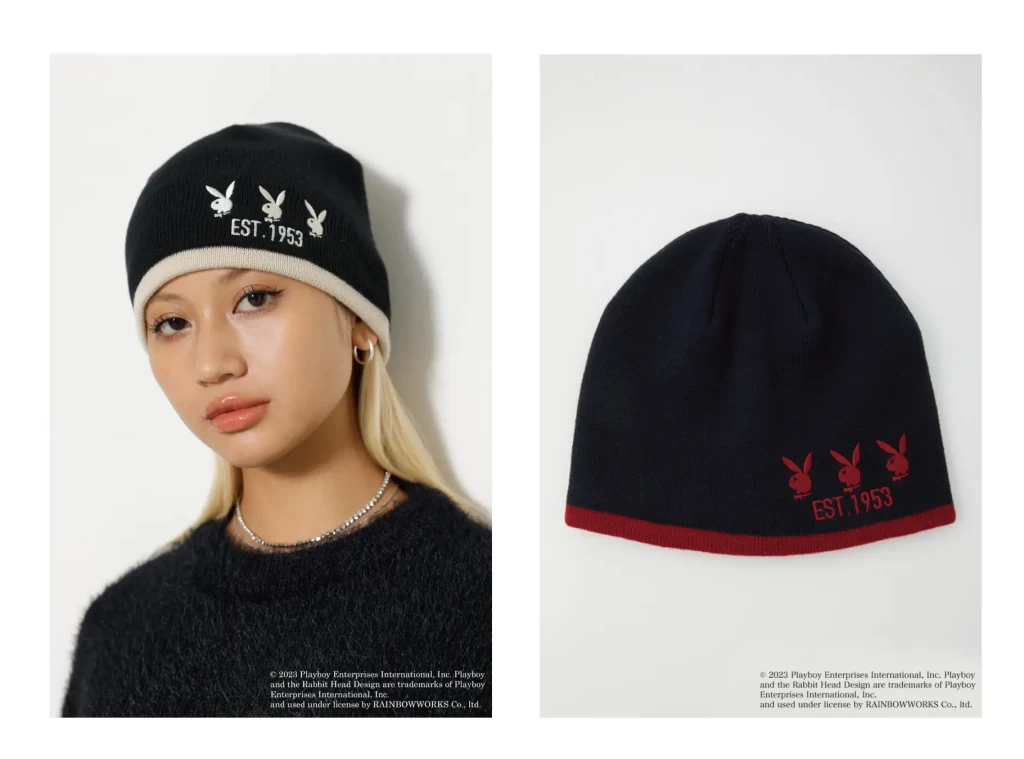 プレイボーイのロゴであるラビットヘッドは、洗練と遊び心の象徴で、コレクション全体にあしらわれています。