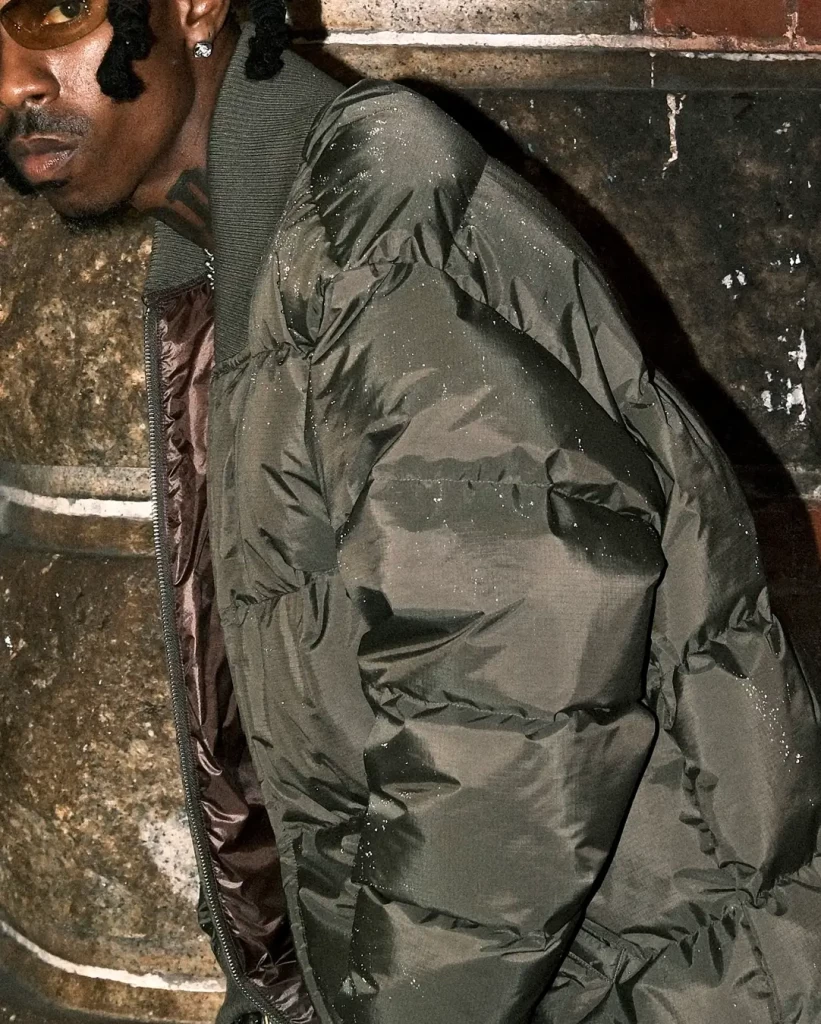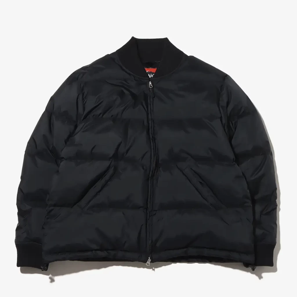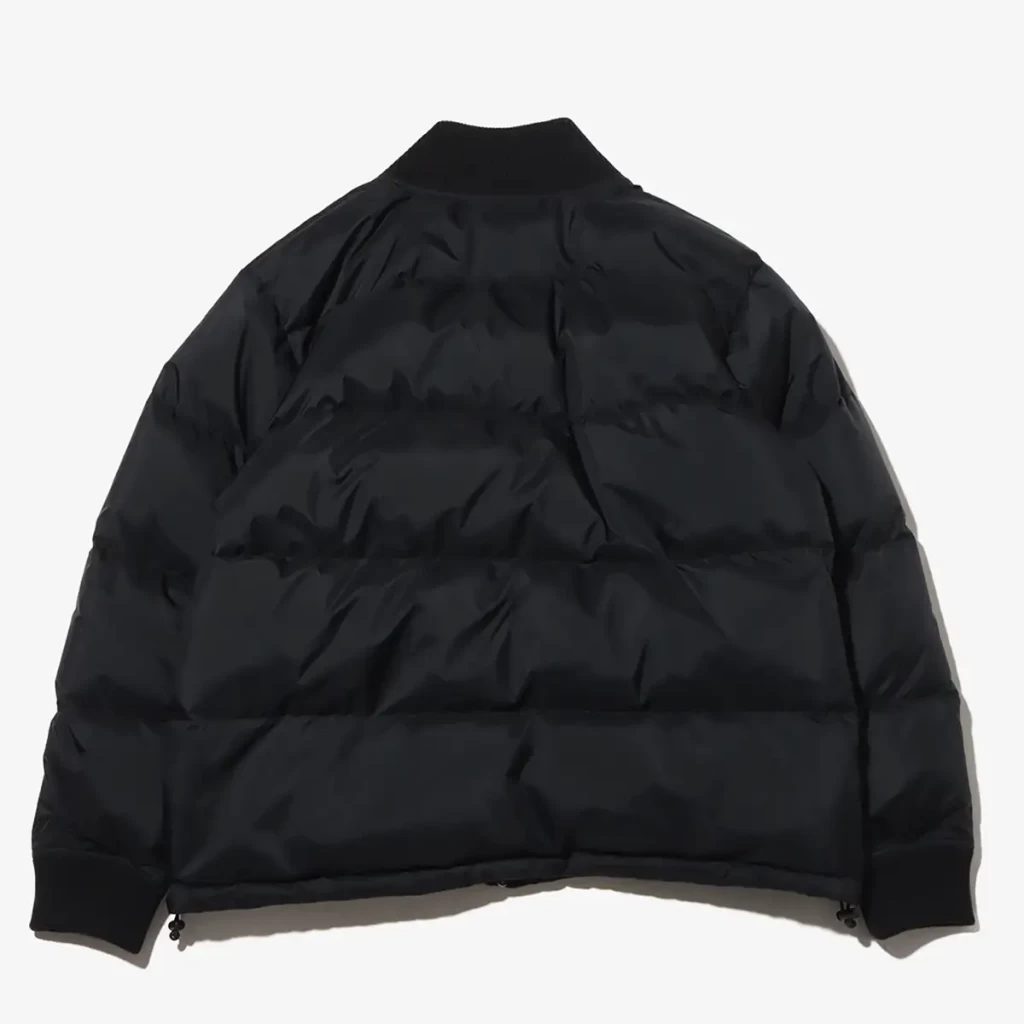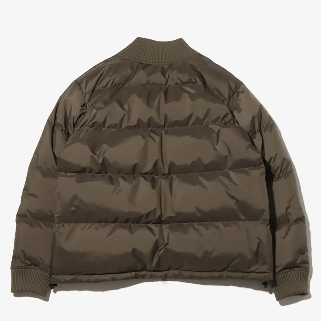 コラボ仕様の今作は、形を着丈がやや短めのボックスシルエットのブルゾンタイプでアレンジし、襟や袖口には、フライトジャケット風のリブを付属して保温性と防風性を完備。裾はゴムコードによりシルエットを好みに合わせて調節できます。