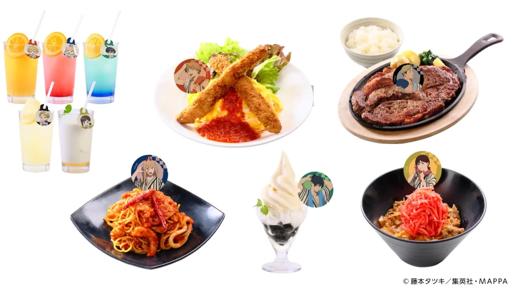 店舗のお食事処にてキャラクターをイメージしたコラボメニューの他、5種類のデザインから選べるタンブラー付きドリンクも数量限定で販売いたします。