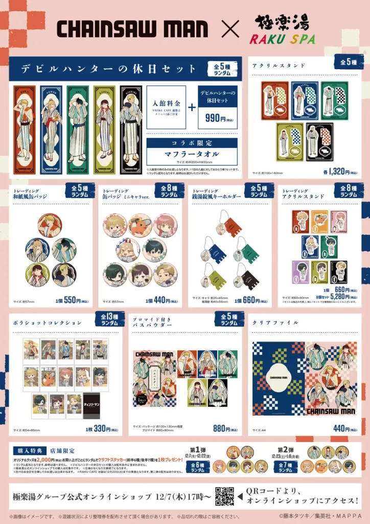 株式会社極楽湯は2023年12月7日(木)より極楽湯グループ22店舗で、TVアニメ『チェンソーマン』とのコラボキャンペーン“デビルハンターの休日”を開催する。