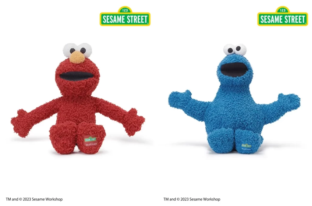 ジェラート ピケを代表する’ジェラート’素材を使用した、ふわふわ、モコモコな手触りのエルモとクッキーモンスターのぬいぐるみです。