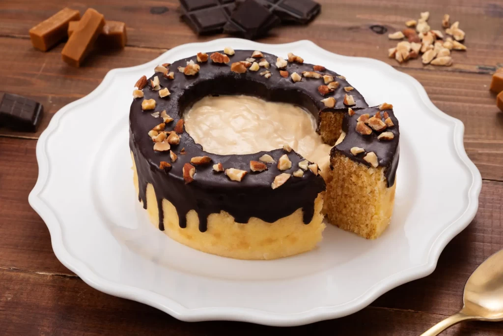 香ばしく炒ったアーモンドとピスタチオをトッピングし、中心には少しビターなキャラメルクリームを入れました。