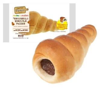「せかいいちおいしい もりのパンや」のチョココロネをイメージしました。チョコクリームを入れたチョココロネです。