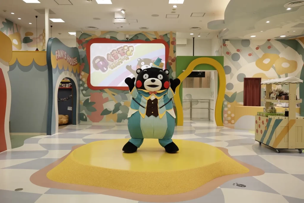 2人のトークイベントが盛り上がる中、くまモンの最新ダンス曲「まんまくまモン」が館内に響き渡り、くまモンが登場。