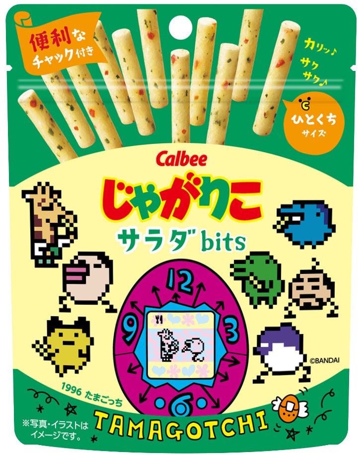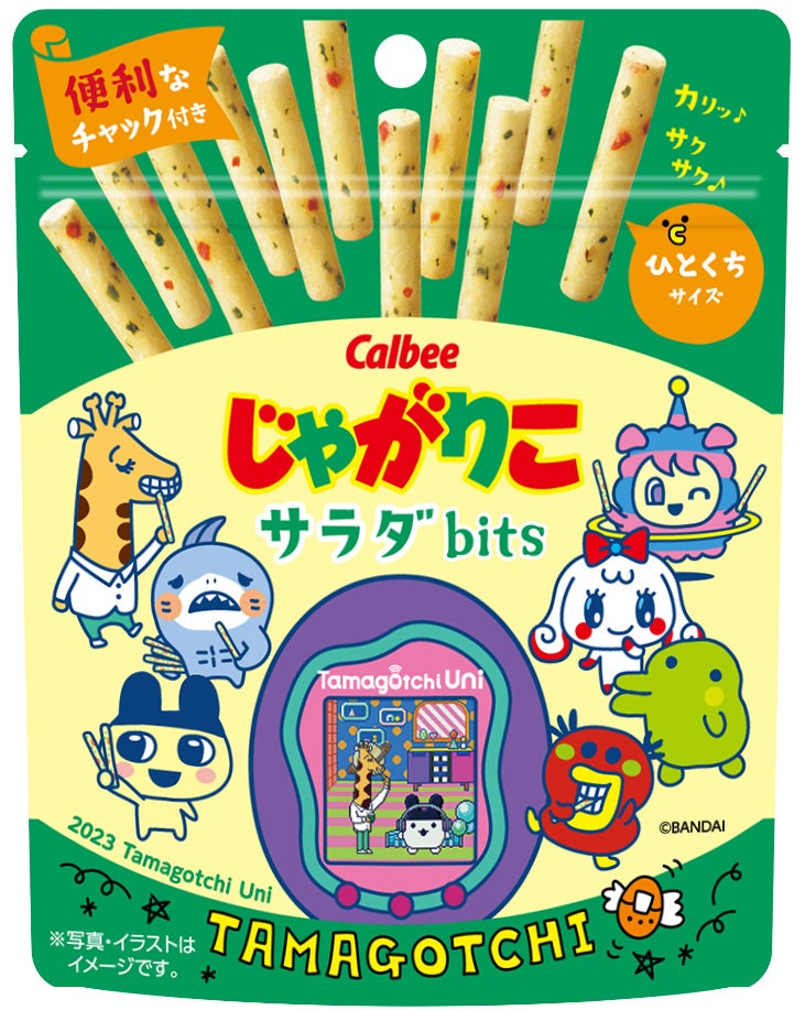 カルビー株式会社は、株式会社バンダイが展開する「たまごっち」と初めてコラボレーションし、『じゃがりこ サラダbits』を2023年12月中旬より期間限定コラボレーションパッケージに切り替えます(2024年2月中旬終了予定)。