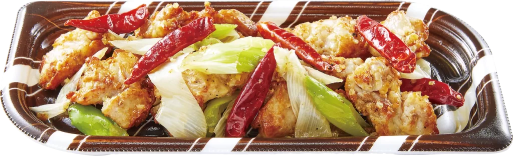 アントニオ猪木が愛する辣子鶏をイメージし、ニンニクの効いた鶏の唐辛子炒めを再現。