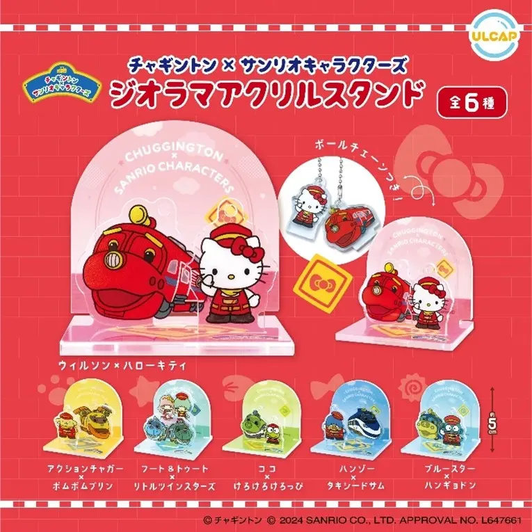 毎週日曜あさ6時15分よりフジテレビで放送中の鉄道CGアニメ『チャギントン』が、サンリオの人気キャラクターたちと初のコラボレーション。今回のコラボイラストでは、ハローキティ、ハンギョドン、けろけろけろっぴ、タキシードサム、ポムポムプリン、リトルツインスターズがチャギントンナビゲーターの衣装を着用し、カラーや性格がマッチしたチャギントンのキャラクターたちと並びます。
