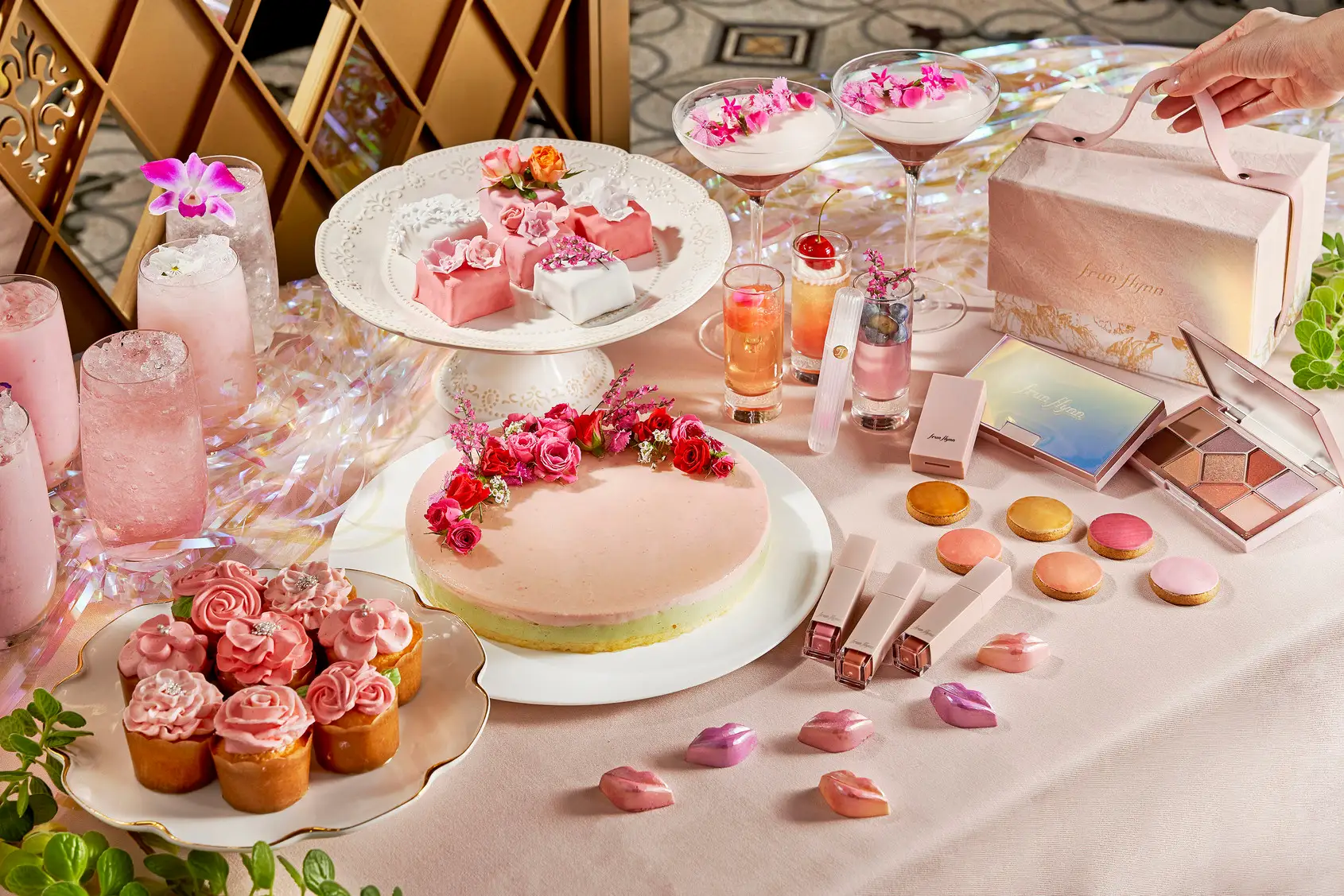 他にも店内には『frunflynn (フルンフリン)』のディスプレイコーナーが登場し、リップやアイシャドウパレットなど同ブランドが展開する様々な商品を実際に見ることができます。また今回の初コラボレーションを記念し、デザートビュッフェにお越しいただくゲストにはもれなく、“落ちないリップ”として人気の「フルンフリン シャインユー グロウティント」をお一人様1本プレゼント。メイク直しを気にすることなく、デザートビュッフェを心ゆくまでご堪能できます!