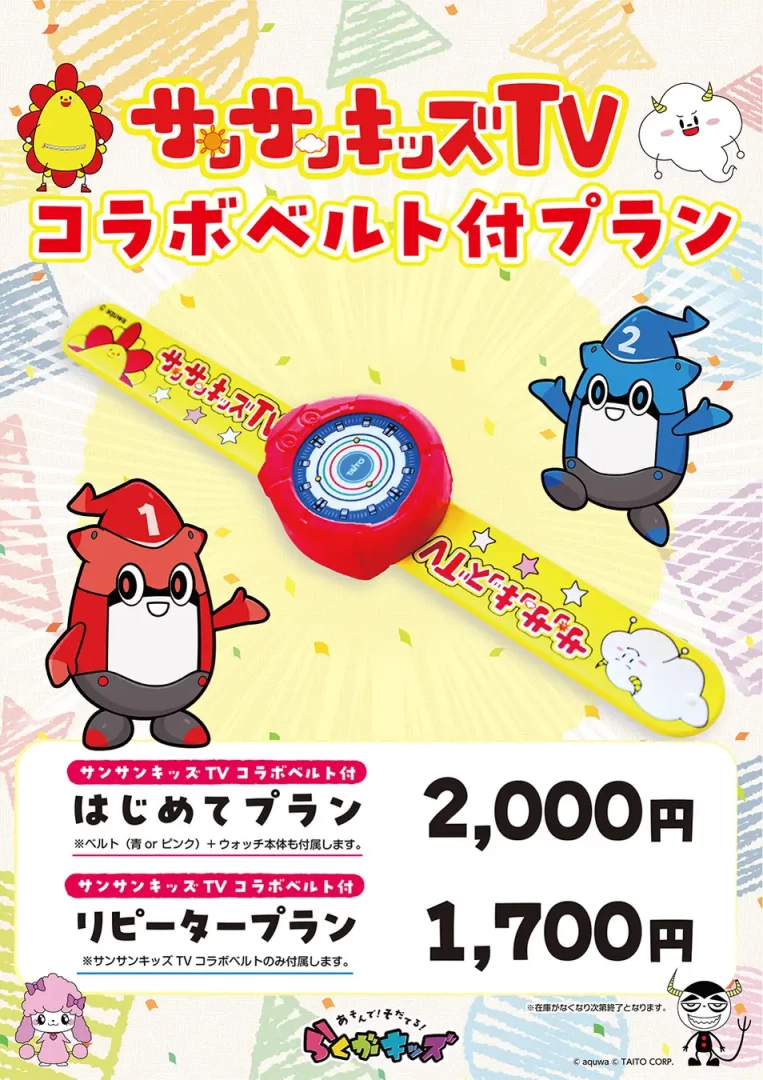 タイトー「らくがキッズ」から”サンサンキッズTVコラボベルト付きプラン”が5月24日よりスタート!