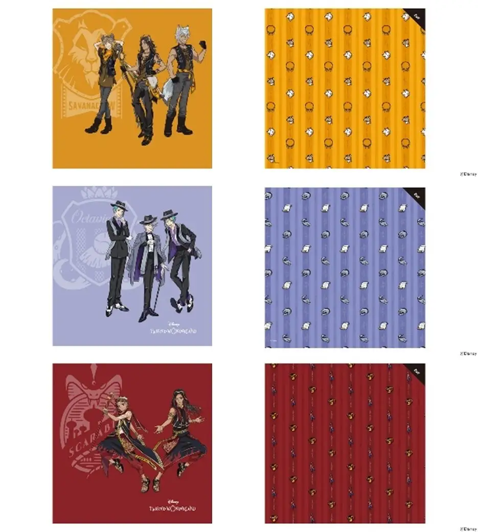 各寮がデザインされた30cm x 30cmの大判サイズ。裏面はキャラクターモチーフの総柄になっており、両面楽しめる豪華な作り。